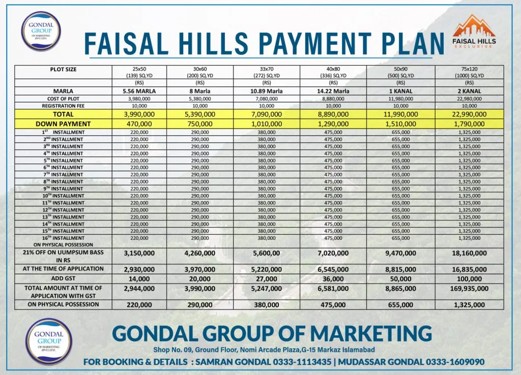 The residential societies near Islamabad, including Faisal Hills, Multi Garden phase-2, Top City, Faisal Town, and Park View City, offer diverse options for those seeking a quality living experience. Each society has its unique features and developments, making it crucial to explore the detailed information provided on the Gondal Group of Marketing website. Whether you are looking for a secure investment or a comfortable home, these societies provide a range of options to suit different preferences and budgets. Contact Gondal Group of Marketing to gather further information and embark on a journey towards finding the ideal residential society near Islamabad.