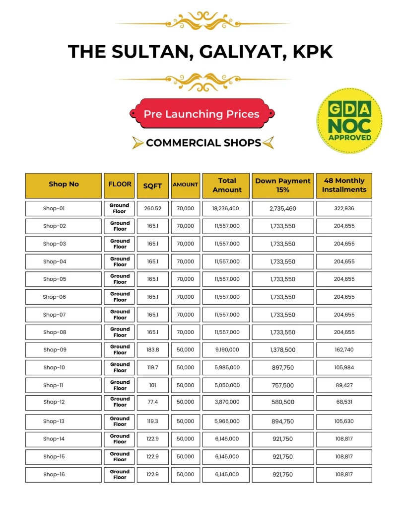 At The Sultan Galiyat, we offer competitive rates, lower than those of surrounding areas like Nathia Gali and Ayubia. As a Gondal Group of Marketing client and for the first timer, you can take advantage of our exclusive pre-launch discount rates. These prices include dedicated parking spaces, ensuring that you get the best value for your investment.